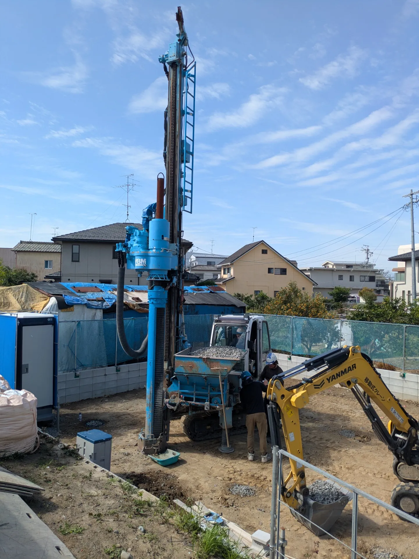 快晴の中、地盤改良工事を行いました。